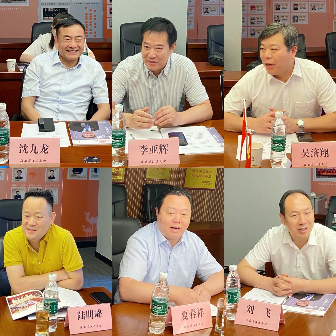 7月9日上午,陜西省江蘇商會(huì)會(huì)長胡德林、監(jiān)事長李亞輝、副會(huì)長吳濟(jì)翔、沈九龍、陸明峰、夏春祥,秘書長劉飛一行蒞臨集團(tuán)考察交流。